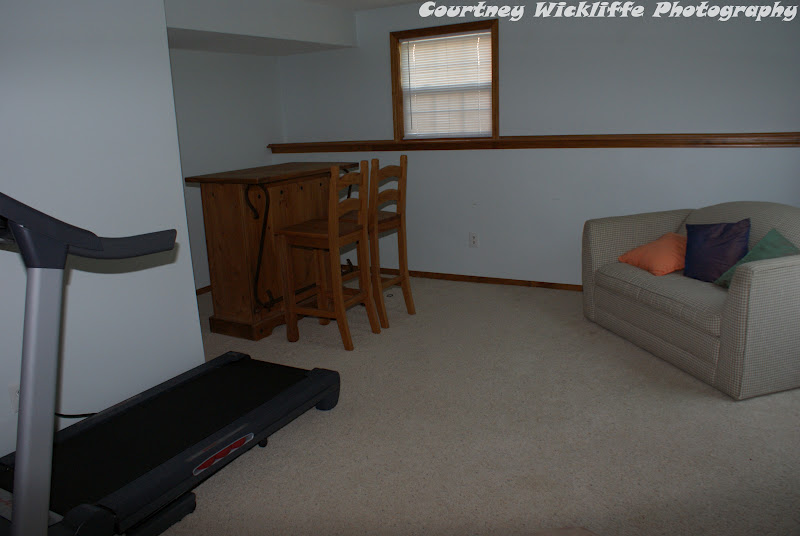 This is the basement. It's was huge and finished. We thought we could put the living area down here and just have a little sitting area upstairs.